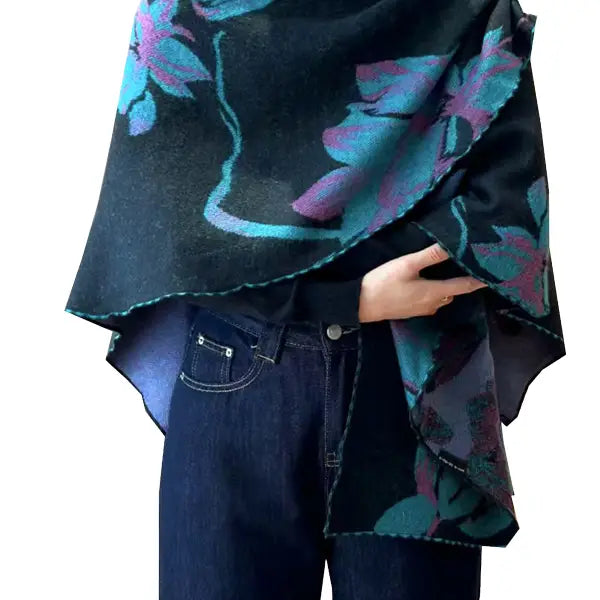 Cozy Cashmere Like Travel Wrap This one size fits all reversible loop wrap, drapes over and through shoulder loop to stay in place. Accents any outfit, casual or dressy. It feels and looks like cashmere. A beautiful layering piece!