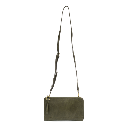 The Karina combines sleek styling with uber organization in beautiful antique-looking dark olive colored vegan leather! The ultimate in versatility, this bag can be worn as a crossbody, carried as a clutch or as a wristlet.  The included bonus wallet with credit card slots, id windows, zippered change pocket, and billfold will keep you organized on the go and can be carried separately!