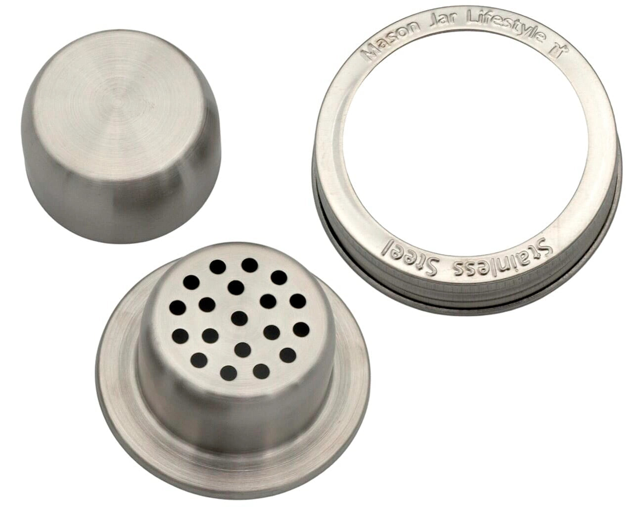 Mix your drinks in style! Use with any size regular mouth Mason jar – make a small, medium, or large batch of cocktails and mocktails by switching in a half-pint, pint, or quart jar!
